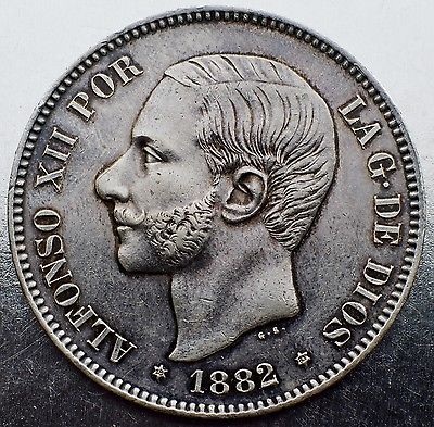 Quisiera saber el valor de una moneda española año 1882 de 5 pesetas