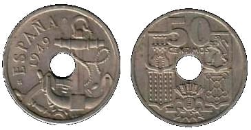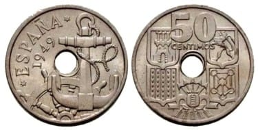Muy interesante! La historia de las monedas de 50 céntimos de 1949; soy "nuevo" y limpiando mis monedas he visto que es cierto que hay algunas de ellas con las flechas invertidas, ¿significa algo en particular? - Ramon Miralles