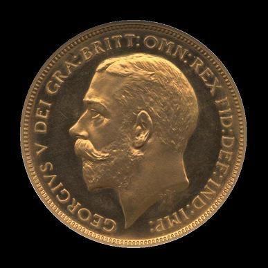 Anverso: cabeza de Jorge V a la izquierda GEORGIVS V DEI GRA:BRITT:OMN: REX FID:DEF:IND:IMP