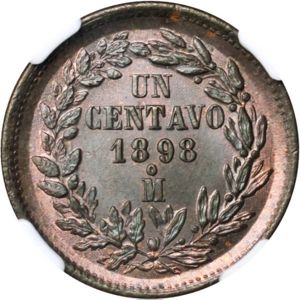 La mayoría de los centavos desde 1869 hasta 1897 en la página 582 y en la misma página a continuación solo esta moneda de 1898 (el dibujo del águila es distinto al anterior)