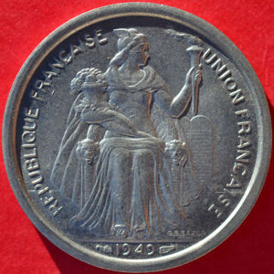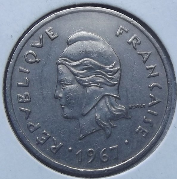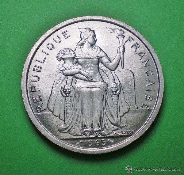 1 Franc 1965 Valor, paisaje palmeras /Señora sentada con antorcha y fecha