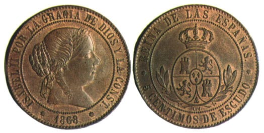 5 Céntimos de Escudo 1868 Jubia. 25 €