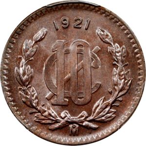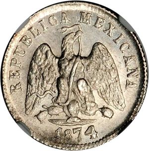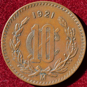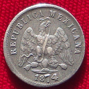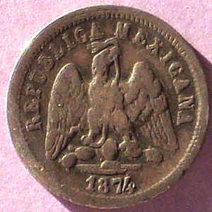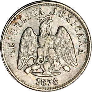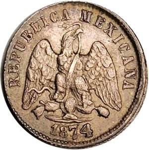 10 cvs. 1874 Mo MJ (creo) Valor y hojas / escudo y fecha