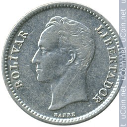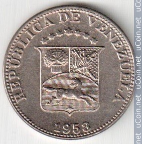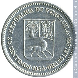 25 cvs. 1954 Valor, escudo y fecha / Perfil Simón Bolívar
