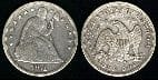 Esta moneda es un dólar de 1866 hasta 1873. Liberty. Seated w/ motto Es una moneda muy escasa, creo que tiene mucho valor si está en buen estado, pero no puedo asegurártelo, te aconsejo que la lleves a una tienda de numismática donde realicen tasaciones gratuitas para que la examinen "in situ", pienso que puede estar cerca de los 1000 euros (mil)