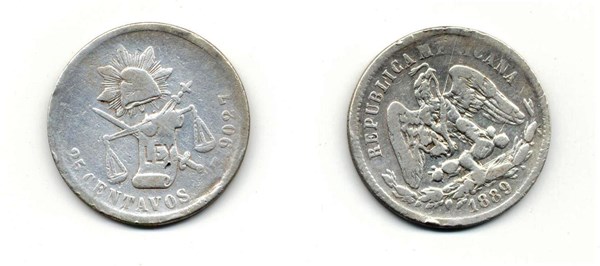 A decir verdad yo tengo una moneda de una peseta de España, acuñada en plata, pero posiblemente tratada en una joyería para arras.