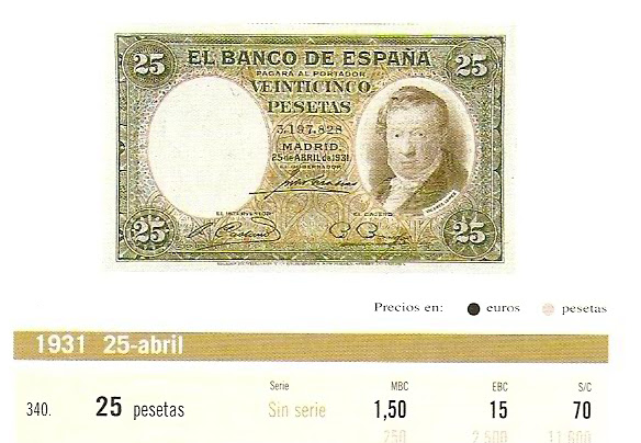 25 ptas de 25-Abril-1931 Sin serie