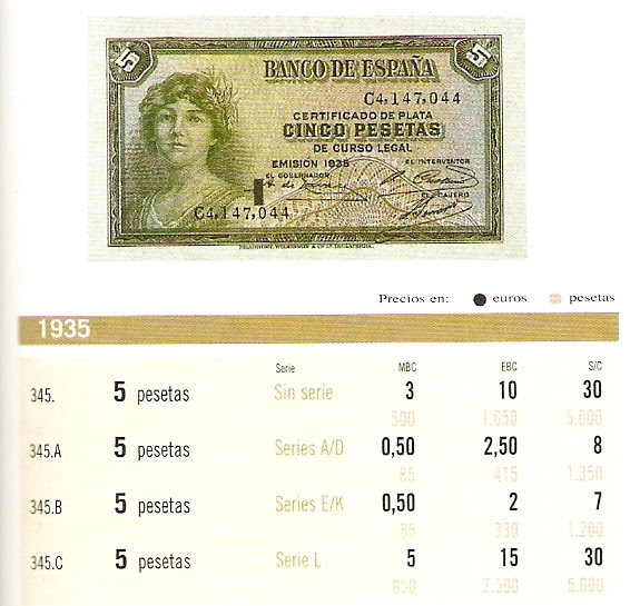 5 ptas de 1935 Rep. Esp serie A, B, C