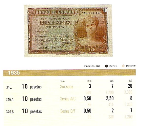10 ptas de 1935 Serie B