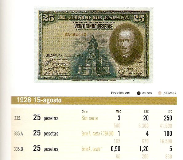 25 ptas de 15-Agosto-1928 Sin serie, Serie A, B, C, D
