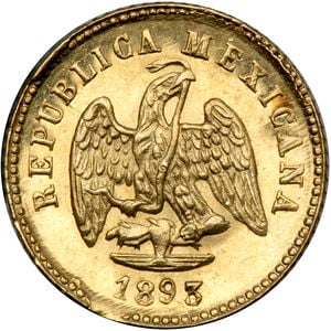 Tengo una moneda o medalla (tiene un aro que se ve que le han puesto) de la república mexicana del año 1893 de oro. Su diámetro es de 1 centímetro. En el anverso tiene un águila con algo debajo que creo que son unas ramas. En el reverso 1 peso, leyenda M 875 Mº y una corona casi entera de hojas. No he encontrado nada sobre esta moneda. Si me puedes ayudar te lo agradeceré.