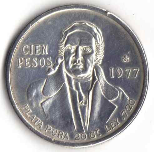 $100 pesos Morelos plata 0.720 (1977 y 1978)