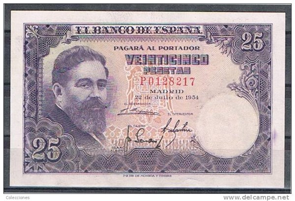 Billete de 25 pts del 22 de julio de 1.954 de isaac albeniz