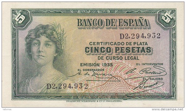 Billete de 5 pts emisión 1.935.Perfecto estado:
