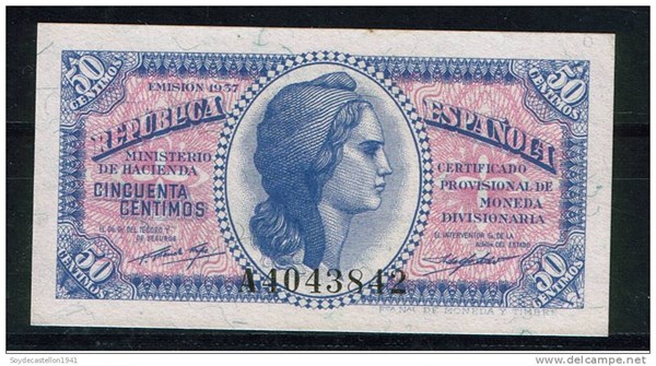 billete de 0,50 céntimos de la república emisión del 1.937.Sin circular