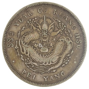 Adquirí una moneda china que dice: 33RD YEAR OF CUANG HSU, PEI YANG. Quisiera saber su historia y su valor.