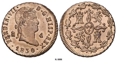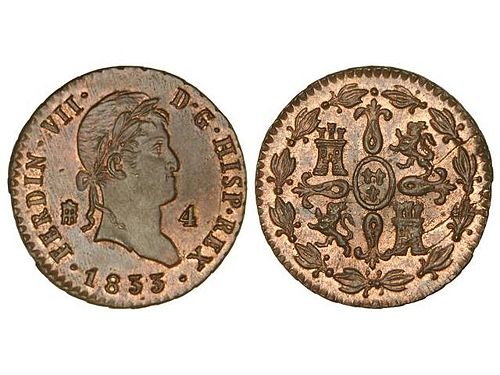 Anverso; Rostro Fernando Vll a la derecha valor facial 8 y creo que Segovia, rodeado de la leyenda Ferdin Vll D.G Hisp Rex y el año 1833.