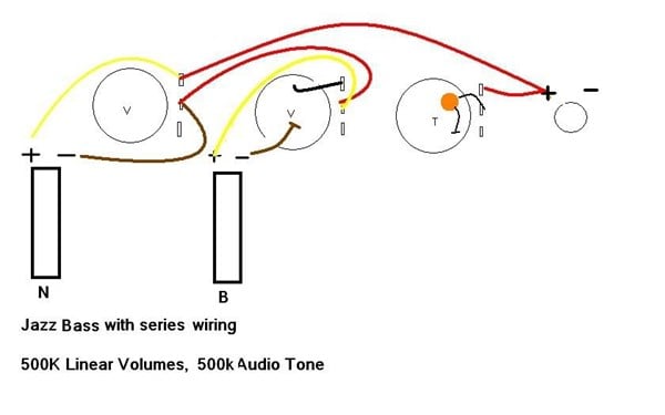Disculpa tengo un bajo hyundai de 4 cuerdas, 3 potenciómetros y un swicht de 3 posiciones y los cables están desoldados quisiera saber si me puedes mandar algún diagrama o si conoces la forma en que va conectado.