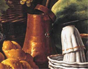 Necesito armar un cuadro con bodegones, pero le voy fallando con el brillo o creo que con todo... Una de los elementos es una lecherita de aluminio y un jarro de bronce y otro de cobre. Tienen cerca un platito con duraznos. . Pero estoy logrando colores parecidos pero no logro un modelado del volumen ni de los brillos.