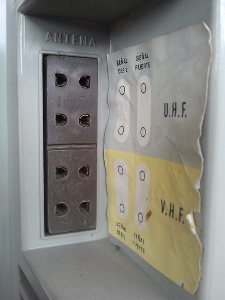 Estoy intentando conectar un antiguo ordenador Spectrum 128+2a a un tv antiguo en blanco y negro. El cable que va del Spectrum al tv es un cable de antena convencional; pero la entrada del tv es la que aparece en la imagen.