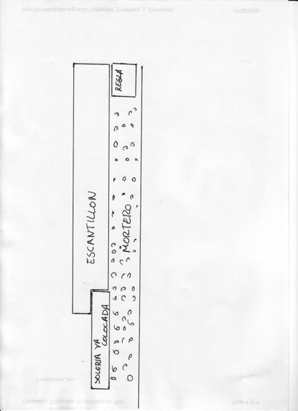 Ahora tienes que fabricar un escantillón que es una regla de hierro o madera y en la que una de las puntas has echo una mueca con un grueso dos milímetros menor que el grueso de la solería. Con este escantillón vas a rastrear desde la solería ya colocada hasta la regla paralela, y así sucesivamente.