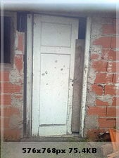 En la foto parece una puerta de chapa, no se ve muy bien el cerco,, en todo caso esa tienes que tirarlo todo con el cerco y todo,, los tornillos que lleve de anclajes con la masa,, no te preocupes por los huecos porque luego o se rellenan con yeso o con ladrillos,, para quitarlo pues o con un corta fríos o lo mejor a estilo compadre con una maceta o martillo le pegas golpes en el cerco y tiene que salir aunque a lo mejor puede ser que te haga falta el corta fríos,, luego si el cerco no te viene preparado con sus travesaños que seguramente si te vengan así pero bueno si no te vienen con una escuadra se la acoplas en las esquinas para dejar el cerco lo mas cuadrado posible y cuando ya tengas la escuadra le pones un travesaño en el centro,, te sire cualquier tablilla que tengas por ahí,, luego tienes que poner otras mas pequeñitas en los dos esquinazos de arriba,, sujetando las esquinas,, esto es bueno porque le da mas resistencia y a los pocos días ya puedes quitar el central y dejar esos y poder pasar mejor al cuarto,, y ya pues lo presentas en el hueco,, si no tienes plomada pues con un nivel, lo vas poniendo a nivel,, primero en horizontal teniendo en cuenta la altura que le tengas que dar,, me imagino que tendrás que calzarla un poco y ya la pones a nivel,, luego tendrás que nivelarla por los exteriores y bueno en el interior comprueba el nivel pero debería estar bien al estar con la escuadra pero te aconsejo pasarle bien y cerciorarte que por todos sus lados esta a nivel,, esta operación tendrás que apañartelas como mejor te apañes, yo como norma general suelo sujetar el cerco con cascotes de escombro o con grapas de ladrillos o con cualquier cosa que te pueda servir para dejar el cerco un poco sujeto para luego poder aplicar el yeso sin miedo a que se te mueva, porque luego si se te mueve tienes que empezar desde cero otra vez,, también te aconsejo que una vez sujeto, le eches unos puntos de yeso negro y dejalo tirar unos diez minutos o así,, y ya no se te moverá y podrás aplicar el yeso sin miedo,,, referente a los tornillos si son especiales,, no tienen que ser especiales, pero suelen llevar clavos de 20 mm,, son un poco gorditos ya que eso es lo que sujeta el cerco,, esos en la ferretería se los pides así clavos del 20 o si eso le dices que son para un cerco y ellos ya sabrán,,, los clavos que no me había acordado también se ponen antes del los travesaños,, mide donde están los antiguos y se los clavas en la misma medida,, lo de poner la puerta no se puede hacer porque el yeso tiene como una semana de fragua con lo cual lo que hace es que se hincha y si no tiene esos travesaños cederá por algún lado y te ocasionara problemas luego,,,, bueno creo que no se me a olvidado nada,, de todos modos ya sabes donde ando si necesitas cualquier cosa vale,.