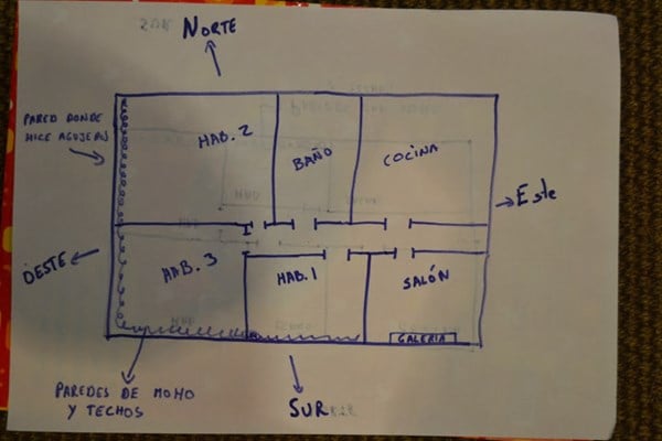 Observa que el problema lo tienes precisamente en los dormitorios, que es donde la transpiración humana tiene mucho que ver. Me pregunto si acostumbráis a mantenerlos con las puertas cerradas, especialmente de noche. Partiendo de este supuesto (si no, pensaríamos en otra cosa), lo primero que tienes que hacer es ponerles a todas las puertas al menos una rejilla en la parte baja. Que sea de al menos 10 por 40 cm. En alguna ferretería grande les encontrarás, y las hay de bonitas. Pero, bonitas o feas, tienes que ponerlas. Condición básica.