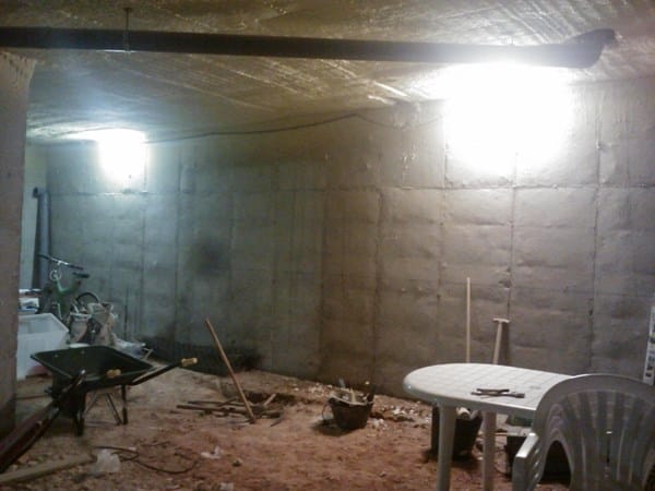 5. Colocar perimetralmente plancha de poliestireno expandido de 2 cm(vulgarmente poliexpan), en la unión del muro con la solera, (para la dilatación).
