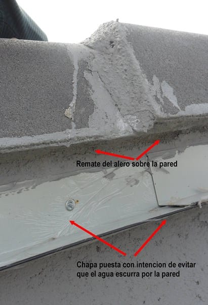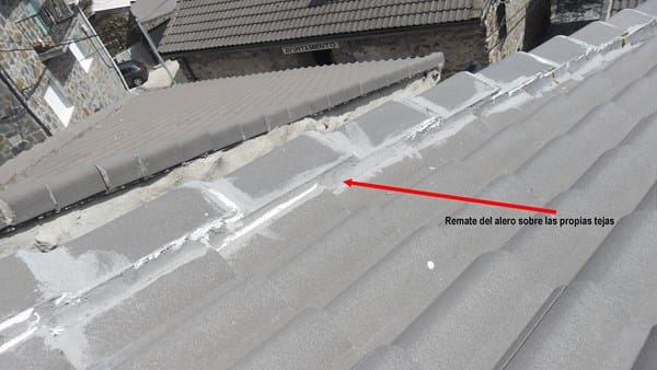 Había pensado poner una chapa en forma de L que tape la teja del alero y parte de la teja contigua con unos 30cm además de unos 20cm de la pared bajante para intentar solucionarlo. Lo que no sé es como sujetar la chapa a las tejas ni donde comprarla.