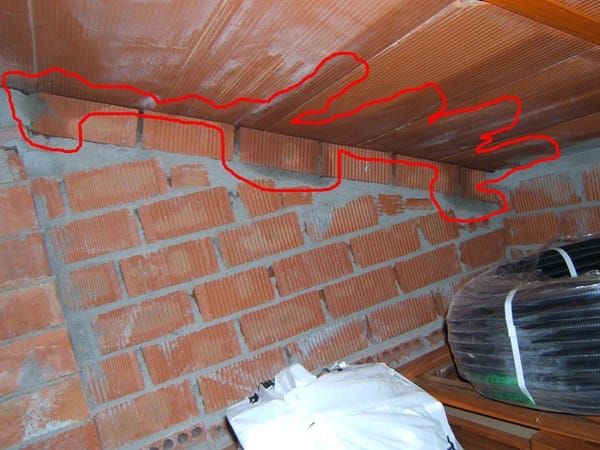 En mi casa cuando llueve se me humedece la pared de la buhardilla y algo los rasillones del techo justo por la esquina de arriba (adjunto foto de humedad desde el interior).