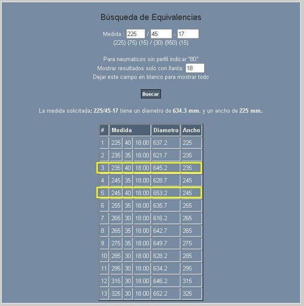 He marcado en amarillo las 2 que me interesan, ¿entonces si escogiera por ejemplo la de 245/40/18 con diámetro 653.2mm conseguiría reducir el espacio entre la rueda y la chapa?