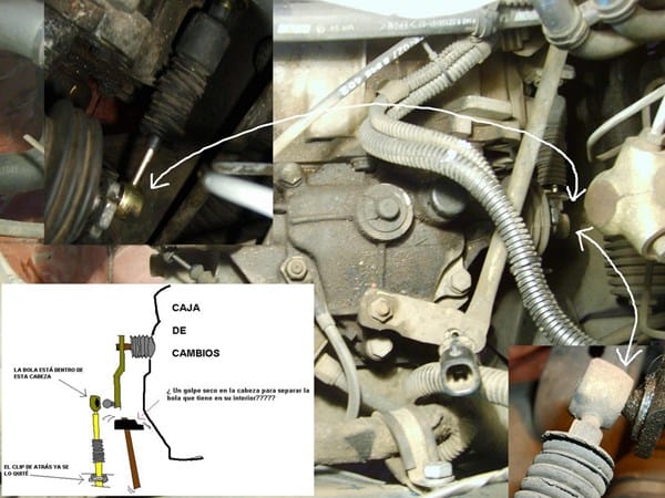 El manual Haynes simplemente dice que retire esa conexión, pero no veo ningún tornillo ni nada parecido, ¿será dando un golpe seco a esa cabeza para que salga de ella la bola?, ¿No sé de que otra forma puede salir?, y temo cagarla con ese golpe para sacar esa cabeza que tiene la bola dentro, por si mueve piñones, ¿o no sé el que? Ya que esa bola que tiene ese extremo que tengo que retirar esta conectada a una palanquita que hace los cambios. ¿Sabe alguien si es así? ¿O cómo se saca?