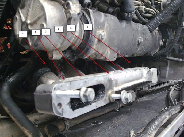 He sacado 6 tornillos de las zonas aprox. Que muestro en la foto, y algunos más que pertenecen al escape, pero el colector de admison tendría que salir, se mueve... Pero nada como si tocara en algún sitio, parece que esta más desprendido de arriba que de abajo, yo juraría que tiene todos los tornillos sueltos, pero nada, dándole con una maza de nylon, se mueve pero no sale.