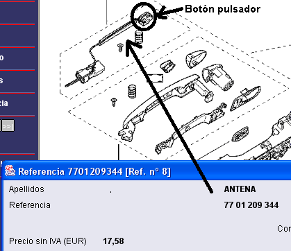 Hola: Hay dos métodos para saber si funciona el botón de apertura de la manecilla exterior de la puerta.Uno, con la CLIP.Dos, desmontando el panel de la puerta y comprobando con un polímetro.Conseguir, se consigue en cualquier punto Renault.Accede a mi web desde tu móvil.Descarga desde aquí la aplicación para Android.Ramón - Ramon Verdial