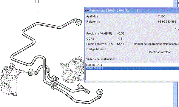 Se ha roto el tubo de alimentación del gasoil que va desde el filtro a la bomba de alta presión de mi Renault2 Megane Confort Dynamic . Podrías decirme donde comprarlo y su precio aproximado
