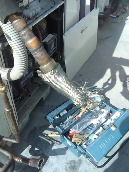 Hola, tengo un equipo dividido de tres t.r. Con bomba de calor, trifásico, compresor rotativo, había trabajado bien durante un año, ahora me avisan que la tubería exploto cuando encendieron la calefacción, al revisarlo me di cuenta que el equipo fue manipulado en las conexiones eléctricas, y tiene la rotación al revés, (yo no lo instalé) la persona que lo instaló, colocó tubería tipo "M" de 3/4" rígida en la succión y de 3/8" flexible en la descarga, ¿cuales pudo son er las causas probables de la explosión de la tubería de 3/4"? No se que presión tenia cuando reventó, un reporte de noviembre dice que 60 succión y 250 descarga psi. De antemano te agradezco tu atención.