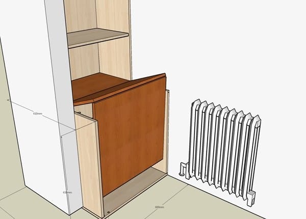 El problema es que tenemos un radiador cerca y no se como montar la parte inferior para poder abrirla y cerrarla para meter el aire cuando toque sin tener que desmontar mucho.