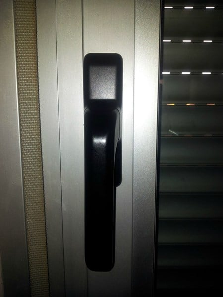 Abrir ventana de aluminio estándar cerrada con la maneta pasada.