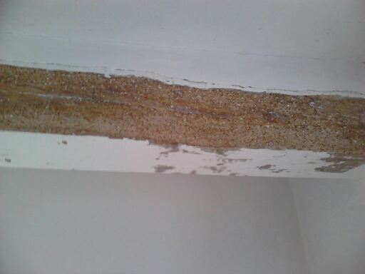 Al empezar a lijar parece ser que la madera no está tan mal como pensaba, la madera carcomida es superficial y solo en un extremo de la viga, lo que se deshace es por algún canto pero no para alarmarse.