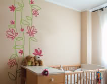 Los muebles de la habitación de mi hija, de 2 años, son en color miel y rojo. ¿Cómo podría pintarla?. Me gustaría que el resultado fuese alegre y que combinase luego con otros colores para nórdicos, cojines... Sin necesidad de tener que escogerlo todo en rojo.