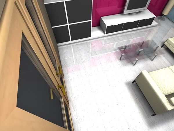 Las dimensiones son 4,33m de largo y 4,93 de ancho. Mirando desde la puerta de entrada, queda 199m de pared a la derecha de la puerta y 157 en la pared de la izquierda y en frente, se encuentra la puerta del balcón y dos ventanas, quedando de pared a la derecha 26 cm y a la izquierda 47cm. Los dos laterales del salón están lisos, aunque en la pared de la derecha (siempre mirando desde la puerta de entrada al salón), tengo el aire acondicionado (pegando a la pared de la ventana y casi pegado al techo).