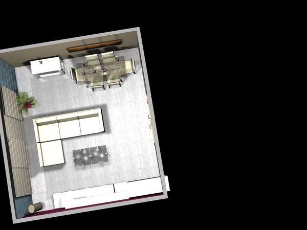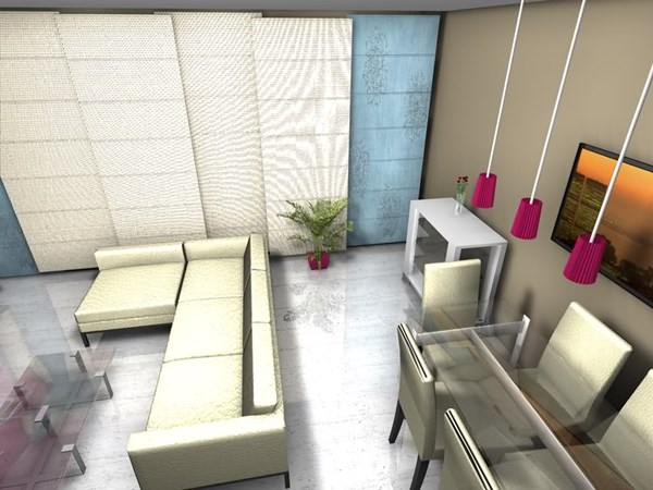 ¿Qué puede hacer? Se me han ocurrido muchas distribuciones, pero como quiero meter, mueble, sofá y comedor (lo típico), no se muy bien como hacerlo.