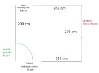 En primer lugar, quisiera darle las gracias por su celeridad y su buen hacer, pero me gustaría hacer algunas aclaraciones. 1- La toma de televisión está en la pared contraria. 2- Si fuese posible, me gustaría poner una pequeña mesa de comedor. 3- Los huecos del pasillo y de la cocina van abiertos hasta el techo y no llevan puertas. 4- Todas las paredes y techos son blancos a excepción de la pared que mide 2.62, que es de color gris. Me gustaría poner un sofá blanco y el resto de colores de muebles no los tengo demasiado claros. Espero no haberle causado muchas molestias. Muchas gracias de nuevo. Un saludo.