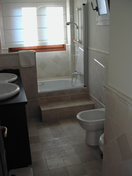 Los pongo los dos baños iguales, ¿tengo uno grande y otro muy pequeño o quedaría muy cargante? Están los dos uno al lado de otro. ¿Y el suelo en que color yo pienso que un color oscuro mejor que un claro no?