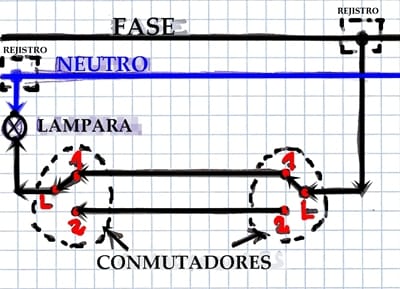 Hola. Tenía el mismo problema y viendo la respuesta de shato, lo solucioné,, si, tan tonto como tener un segundo conmutador tapado por un mueble, el cual estaba en un punto intermedio (ni encendido ni apagado) y por el cual no me llegaba ni corriente al segundo conmutador, ni lógicamente a la lámpara. Gracias shato - Fran Moreno