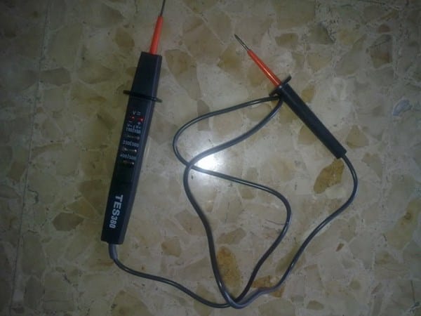 Me he comprado un aparato que tiene 2 puntas metálicas únicas por un cable. Y no se si es un tester o un buscapolos o que. Te mando link de una foto del aparato
