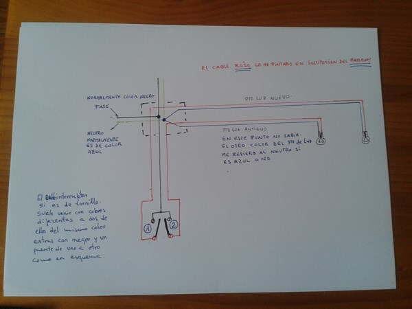 He comprado una llave doble para colocar un segundo punto de luz en la cocina, para ello he pasado un corrugado y un cable marrón y otro azul ( creo que es el neutro), pero cuando he abierto el interruptor para poner el doble, no se como debo de conectarlos para que pueda encender un punto o el otro ya que al interruptor original llegan uno negro y otro marrón.