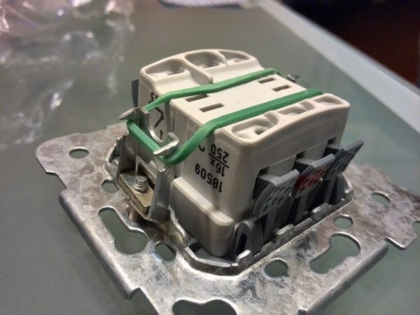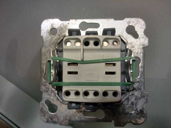 He cambiado todos los interruptores de casa de la marca simón (eran antiguos) por otros de la marca BJC. Solo me queda el del comedor, que es doble. Enciende dos lamparas diferentes. El problema es que las conexiones son diferentes, y no me aclaro. La placa del interruptor doble va junto con un conmutado, pero esto no es problema. Os pongo unas fotos para ver si alguien me puede ayudar. Hay un puente hecho, y uno de los cables marrones va al interruptor conmutado de la misma placa.