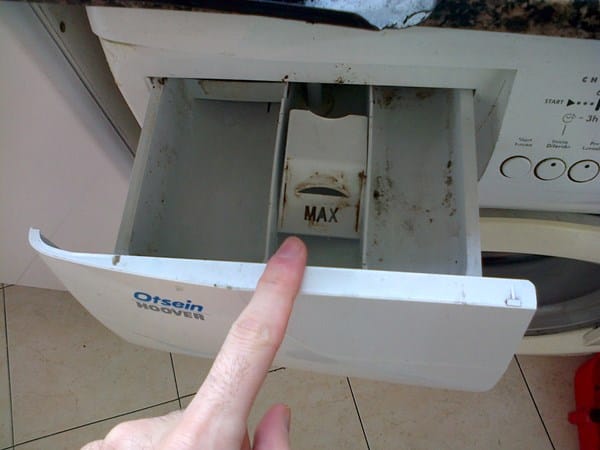 ¿Porque un comparimento lavadora se llena el cajón de en medio? Pongo fotos