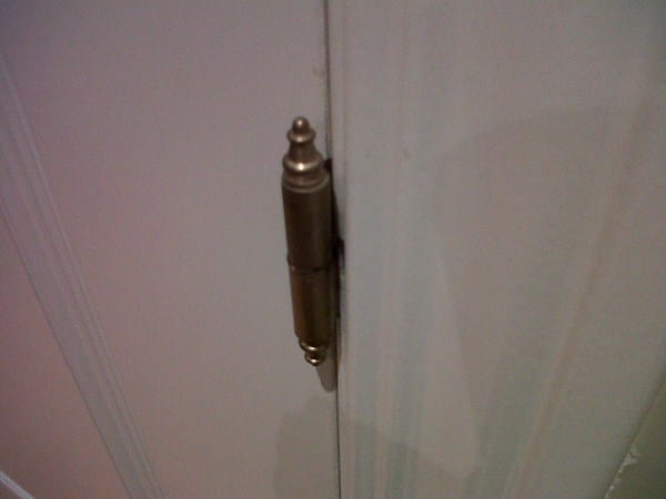 Tengo la siguiente bisagra en una puerta y rechina muchísimo.. Evidentemente se ha quedado sin grasa. Hace un tiempo, levante la puerta y le tire aceite lubricante en aerosol, pero me ha durado poco... Creo que lo hice mal porque levantar la puerta es un lio terrible.